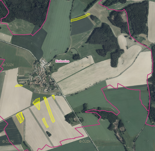 Nabízíme prodej pozemků v katastrálním území Kuňovice, okres Benešov ve Středočeském kraji.