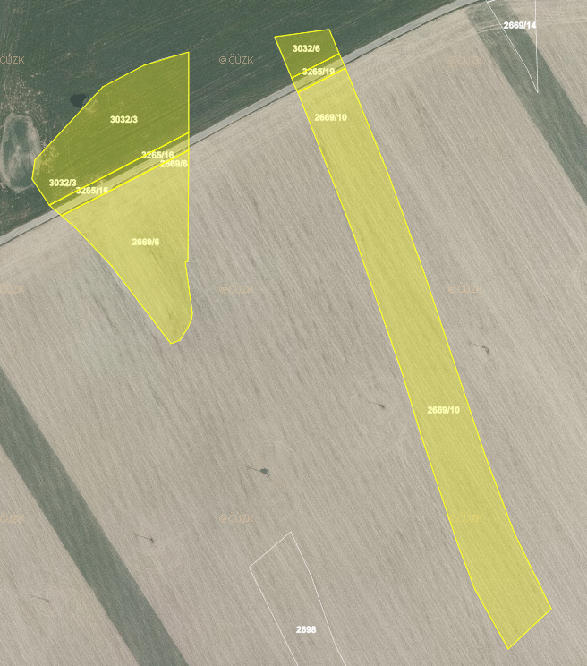 | 2669/6 | 4061 m2 | 1/1 | orná půda | 55 |