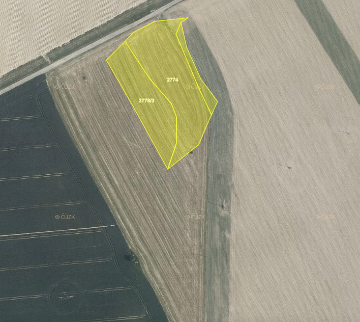 | 2778/3 | 3363 m2 | 1/1 | orná půda | 55 |