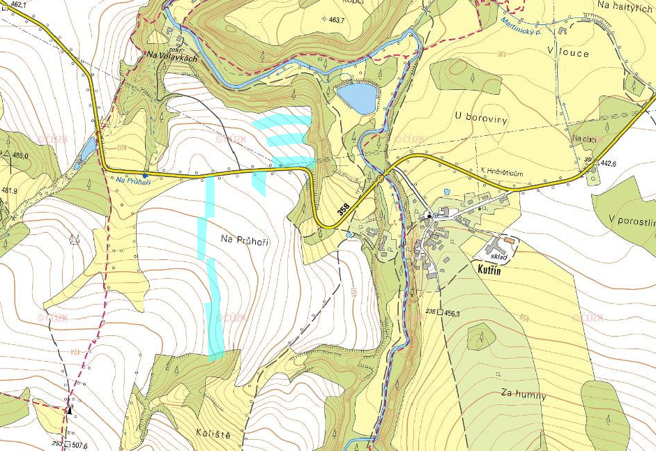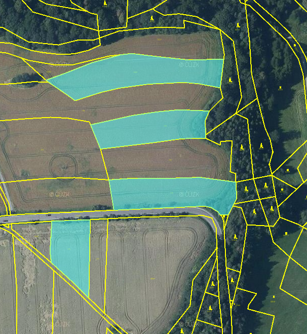 | 757/1 | 500 m2 | 1/3 | lesní pozemek | 76 |
