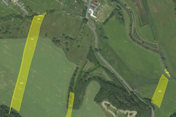 - v polovičním podílu (1/2) – parc. č.: 408/2,409/1,409/2,418/1,441,542/1,660/11,660/14,660/17,662,698/16,710,778,790,792/1,792/2,793/1,793/2 zapsané na LV 624