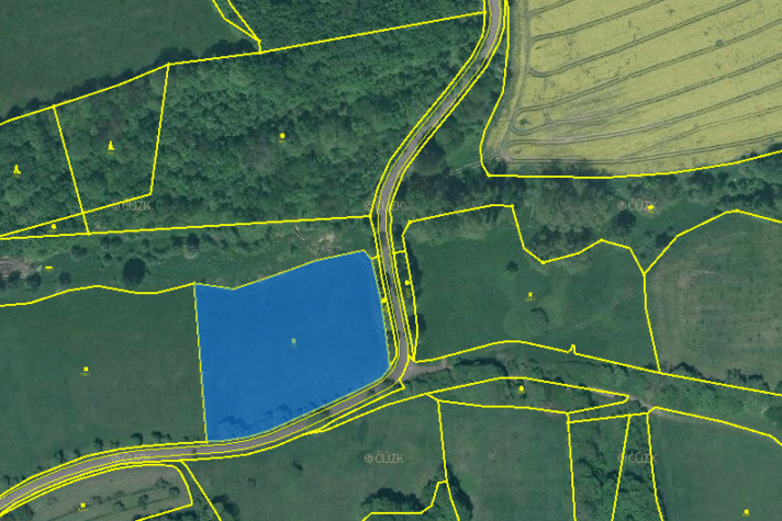 Jedná se o pozemky ve výlučném vlastnictví parc. č. 482/2, 698/1, 708/1, 708/2, 709, 710, 951/2, 1218 zapsané na LV 256.