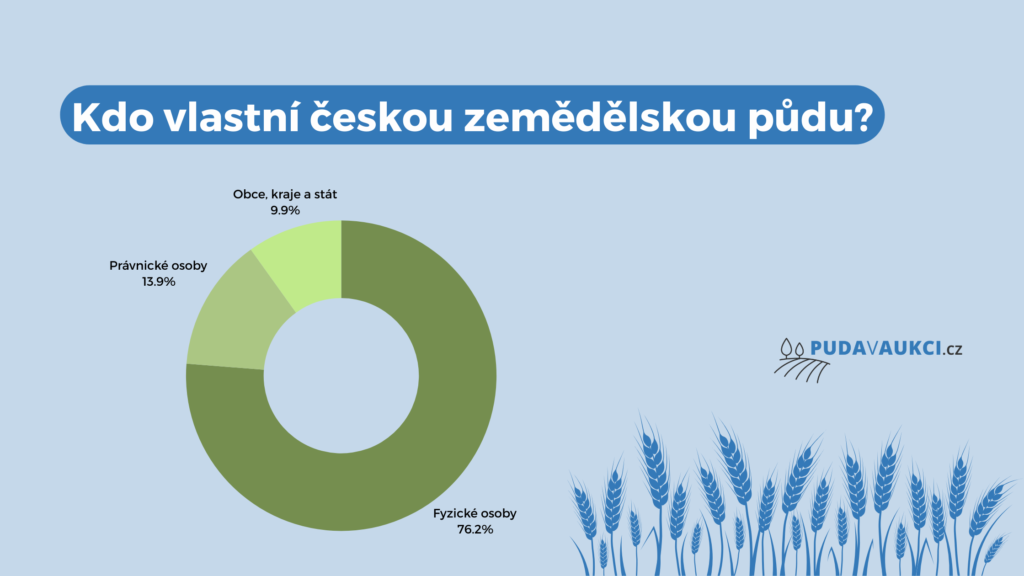 Drtivou většinu zemědělské půdy vlastní fyzické osoby – konkrétně kolem 76 %. Tyto jednotlivé vlastníky tvoří převážně menší farmáři a soukromí majitelé. Právnické osoby, mezi které patří zemědělské podniky či agroholdingy, drží přibližně 13,9 %. Zbytek půdy patří obcím, krajům a státu. Zajímavé je, že ačkoliv většina půdy je ve vlastnictví jednotlivců, většina orné půdy je obhospodařována velkými podniky.