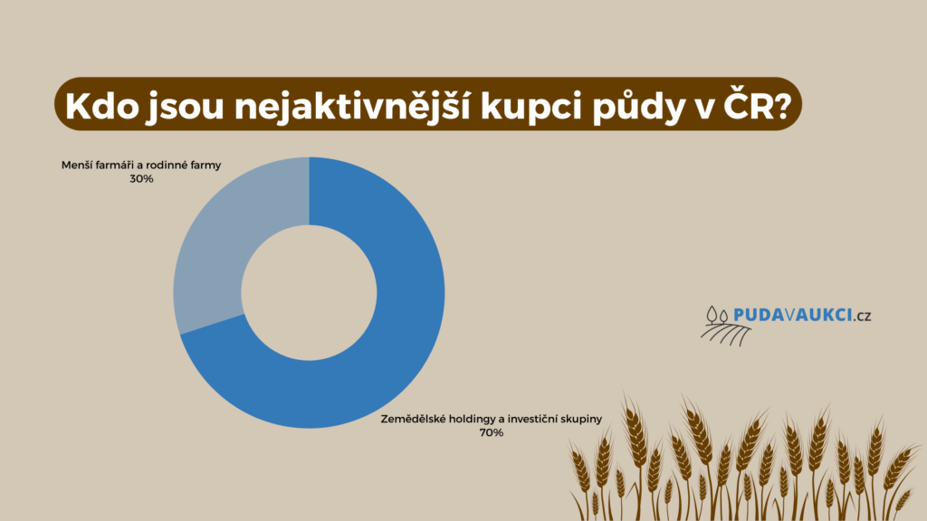 Nejaktivnějšími kupci půdy jsou velké zemědělské holdingy a investoři, kteří půdu soustřeďují do svých portfolií. Ročně dochází k převodu přibližně 2 % z celkové plochy zemědělské půdy, což představuje kolem 80 tisíc hektarů. Největší podíl nákupů připadá právě na velké hráče, jako jsou agroholdingy typu Agrofert nebo investiční skupiny, které půdu často skupují a následně pronajímají či obdělávají. Menší farmáři a rodinné farmy nakupují půdu spíše v menších parcelách a někdy půdu získávají i od těchto velkých subjektů.